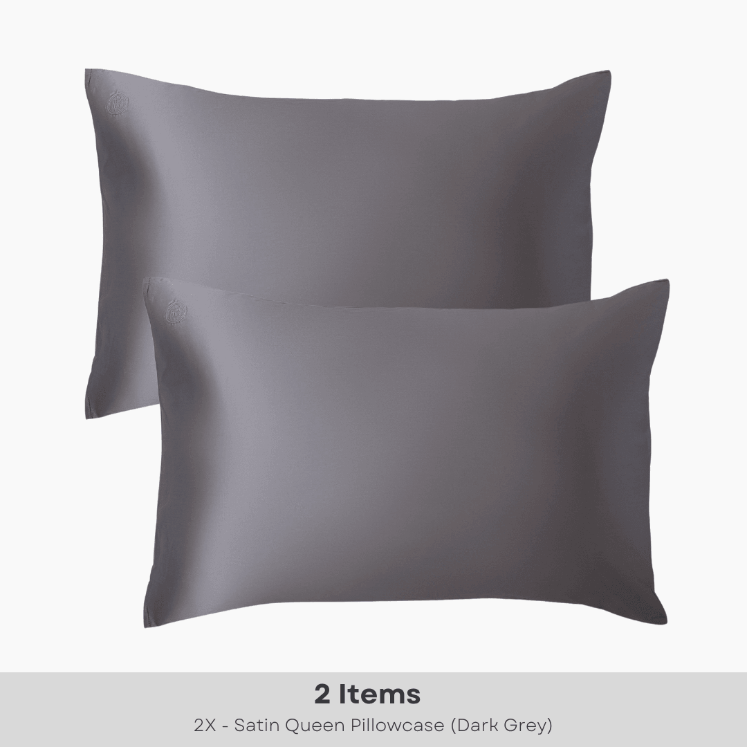 (2 Pack) Dark Grey Satin Queen Pillowcase