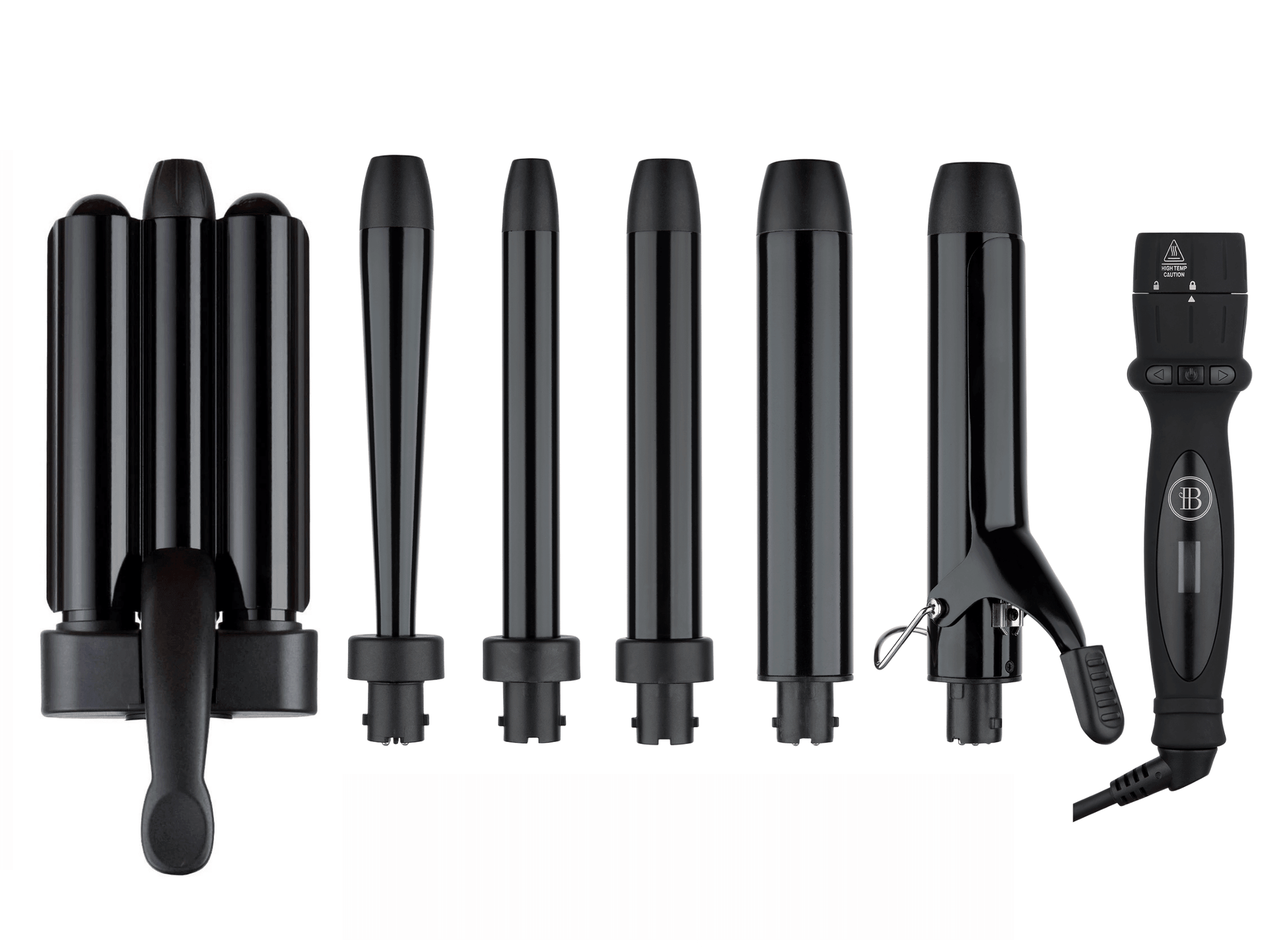 Barrel Size: Six (6) interchangeable barrels/attachment, 32mm (1.25"), 32mm Iron (1.25"), 25mm (1'), 19mm (.75”), 25mm-18mm (1”-0.71”), Hair Waver - three (3) tourmaline ceramic barrels in 22mm or 32mm (.85")