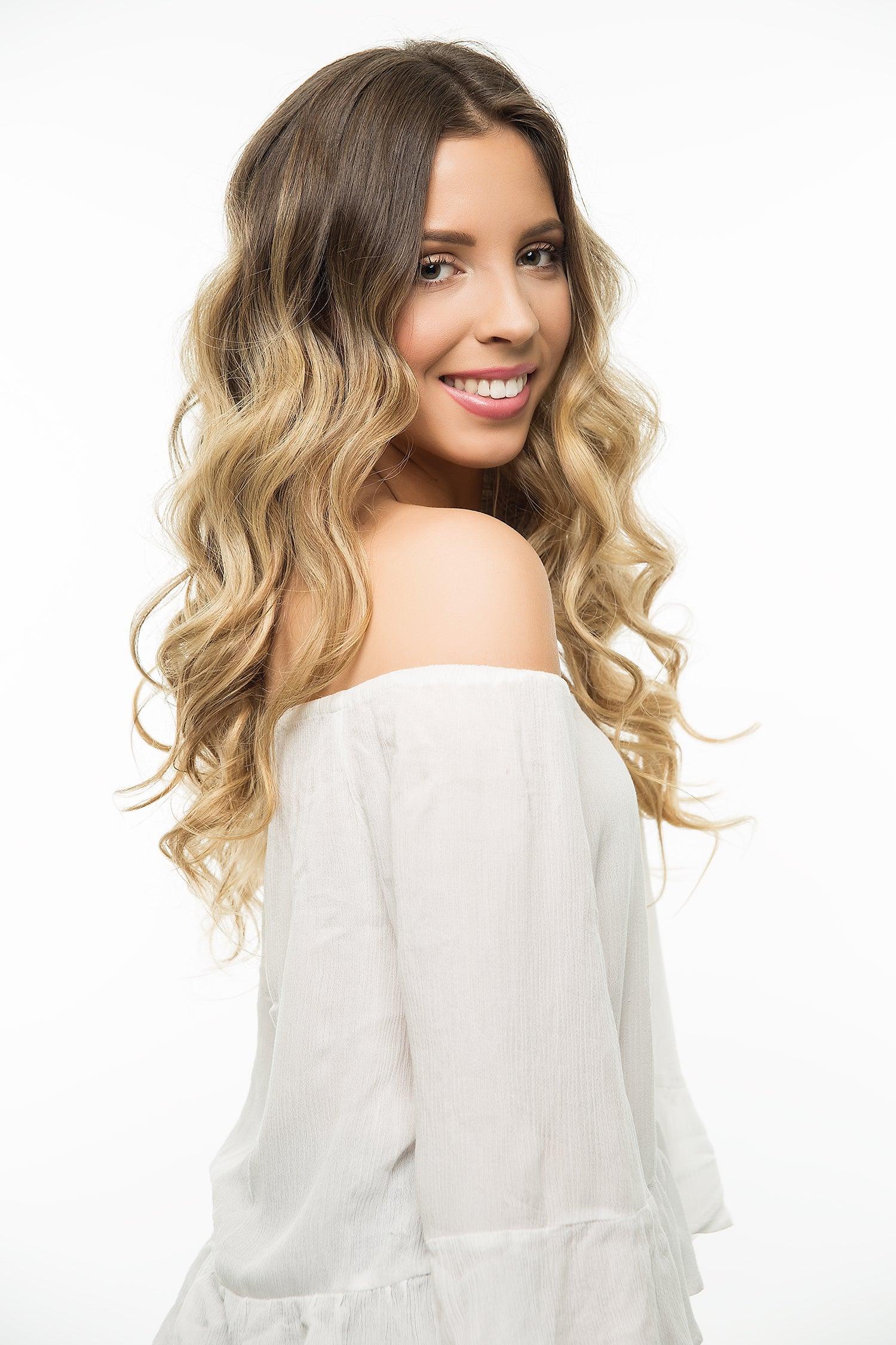 Note, hair has been curled in the photo, using our 25mm Rose Gold Wand.