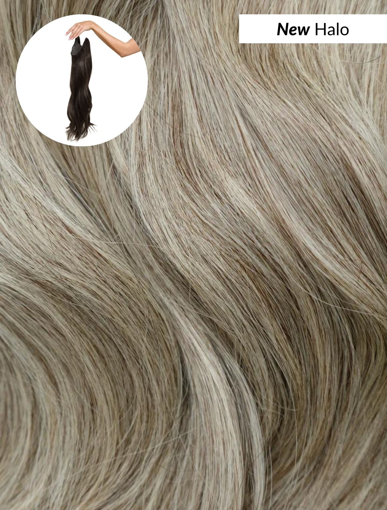 Introducing Bombay Hair's Halo Extensions: the ultimate solution for achieving seamless blend, instant volume, and length. These extensions are designed for effortless application and boast low-maintenance care. Crafted with thickness from root-to-tip and featuring double wefts, they exemplify the renowned quality of Bombay Hair. Additionally, we provide two extra clips to enhance volume and ensure seamless blending. Thanks to multiple wires at varying lengths, achieving the perfect fit has never been easier.