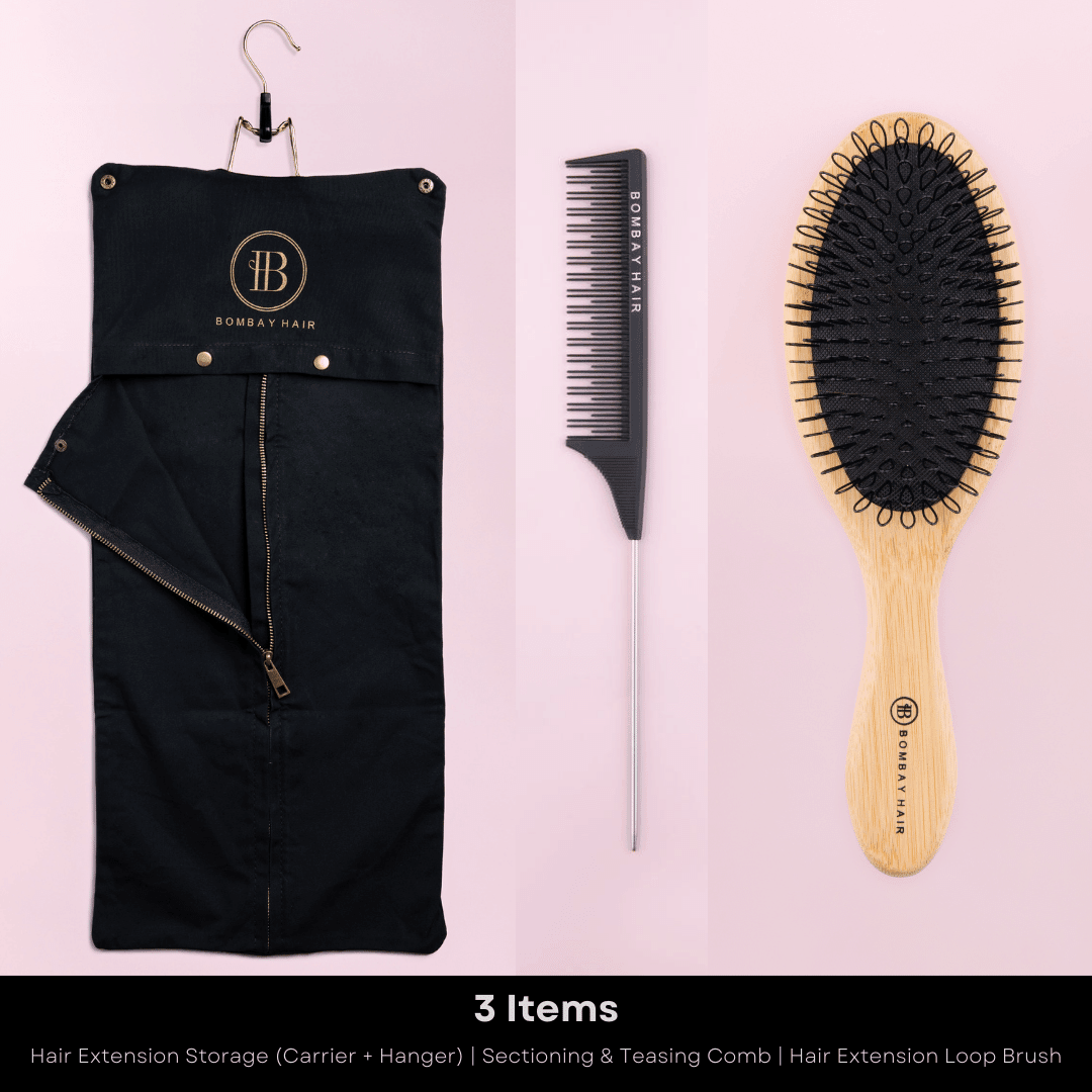 Make traveling a breeze with an easy three-fold design and secure snaps. With the hanger included, you are ready to store your Bombay Hair!
