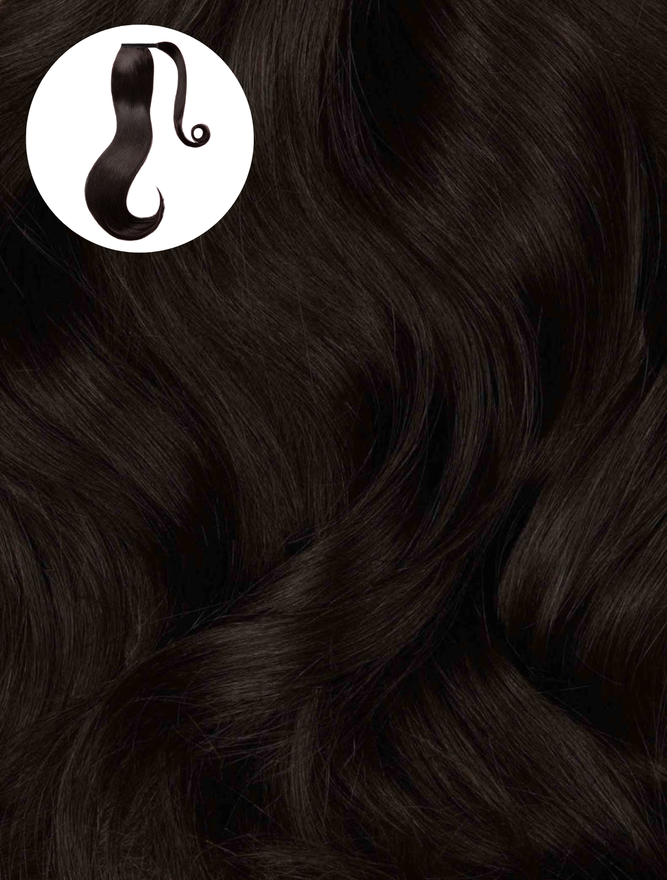 Most ponytail hair extensions are single-drawn and thin, but all Bombay Hair's Clip in Hair Extensions are 100% Real Human Hair and double-drawn. Meaning our hair is thick from root-to-tip. Bombay Hair has sourced out the most beautiful Cuticle Remy hair in the world, and has 100% of the cuticle intact allowing for tangle-free and smooth hair that doesn't dry out quickly. Our Cuticle Remy hair quality is unmatched!