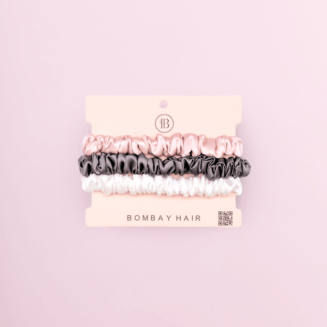 Treat your hair to the best and enjoy improved hair quality, reduced frizziness, and fewer split ends! Bombay Hair luxurious silk scrunchies are made from 100% Mulberry Silk of the highest 6A-grade quality.